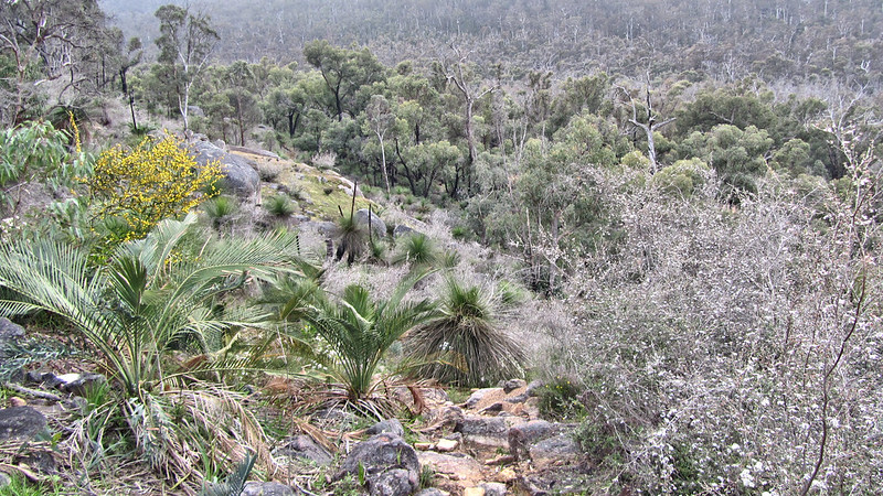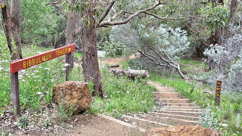 The struggle eased when the track levelled out a little, a gentler incline through the Jarrah and Marri Forests of the Kalamunda National Park. Good paths, though, and the regular waugals and signage kept me from straying.