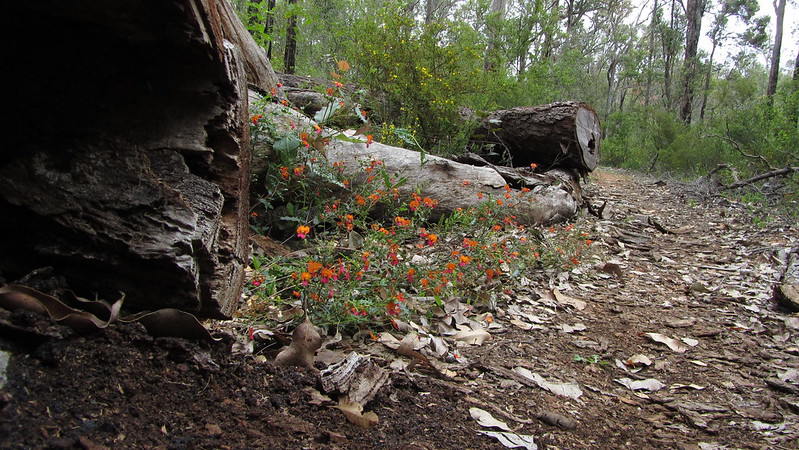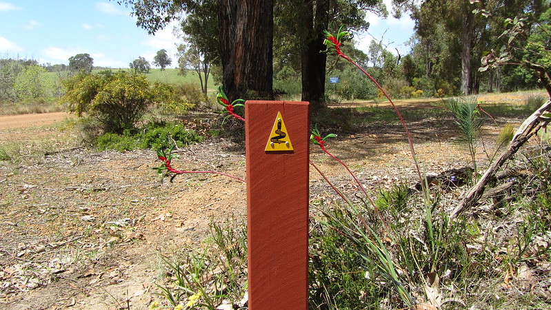 I left, thinking I only had a 5 km walk to Noggerup Hut, but I didn’t account for a 3km realignment that took you along an old railway track with more Kangaroo Paw’s that you could hope to see! I also found myself being attacked by a magpie, which, when reading the log books, seems to be a common occurrence.