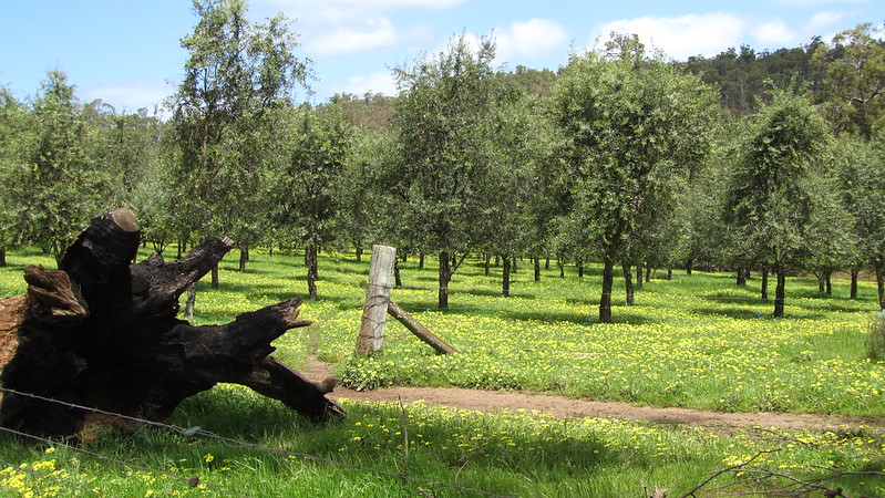 A long 22.5km today, and a sting in the tail. The track had some ups but mainly downs. There were some great wildflowers, and some vistas of open farmland and orchards that were a very welcome change from the forest. I saw another two emus, although they spotted me over 500 metres away!