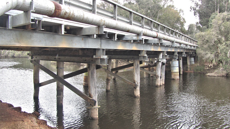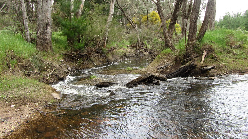 I retraced the long spur back out of town to the track proper, headed up and over to the Collie River. A nice place to stop and swim if the weather were more amiable; today was grey, with a touch of mizzle in the air.