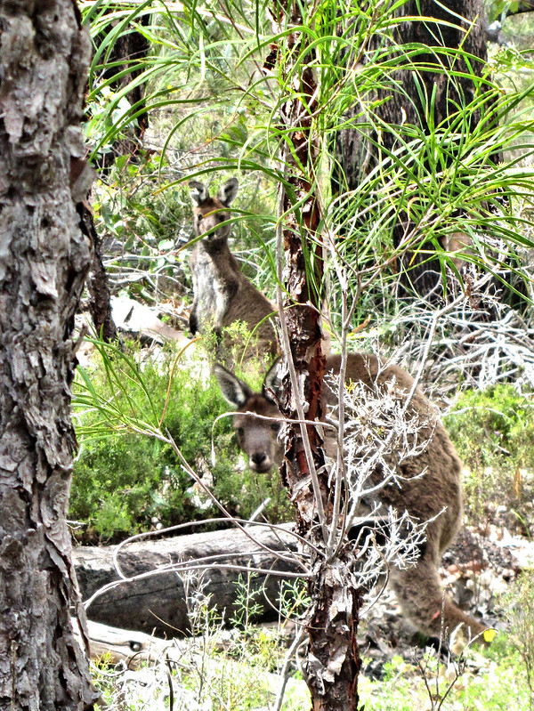 Across Lyall Log Road, I ascended a small hill where I woke a couple of roos. They were still a bit dozy and in no hurry to hop it. They had me in their sights and just watched until I had tired of staring and moved on.